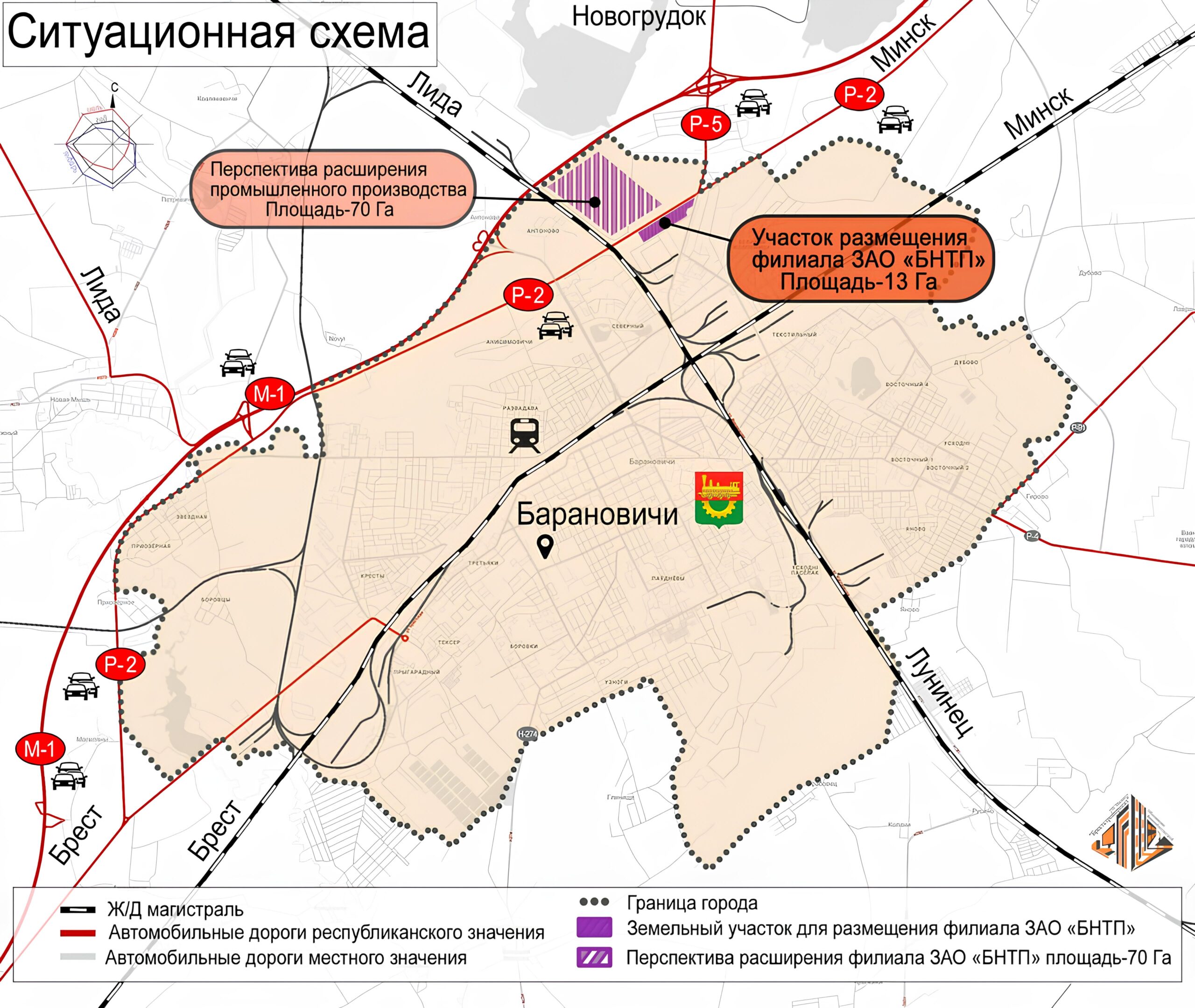 Расположение объекта — в непосредственной близости к  автомобильной магистрали М1/Е30 и железнодорожной ветке.